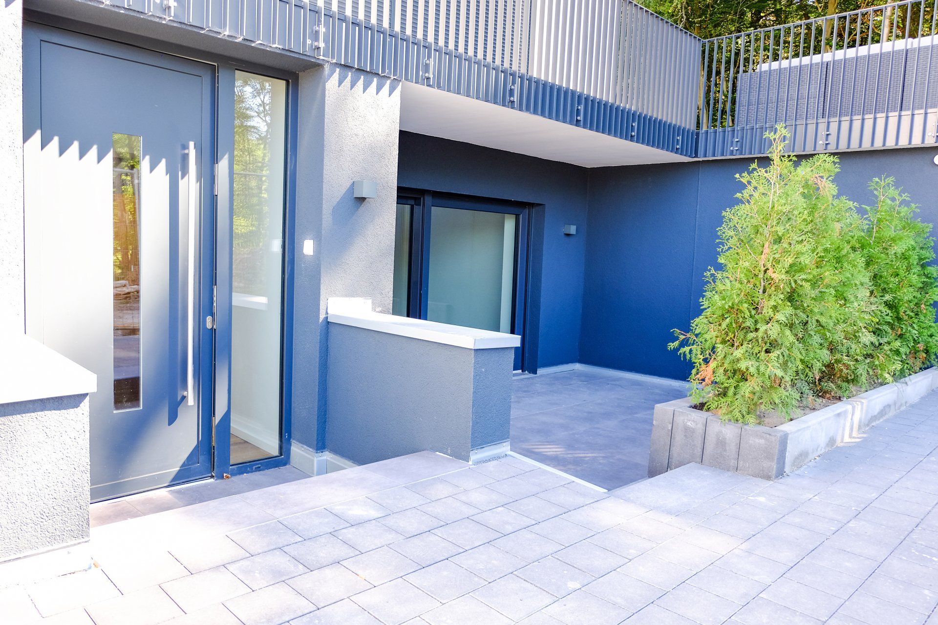 Die Wohnung verfügt über einen eigenen Stellplatz direkt vor der Tür und eine Terrasse (14m²). Die moderne Küche (10m²) und der Wohn-/Essbereich (25m²) schließen sich an die Diele an. Das Elternschlafzimmer (11m²) ist en Suite (5m²) und verfügt über eine Ankleide (5m²). Ein zweites Zimmer (13,6m²) und Gästebad (3,2m²) sind ebenso vorhanden. Der Hauswirtschaftsraum (4,59m²) ist durch den Wohn-/Essbereich zu erreichen.